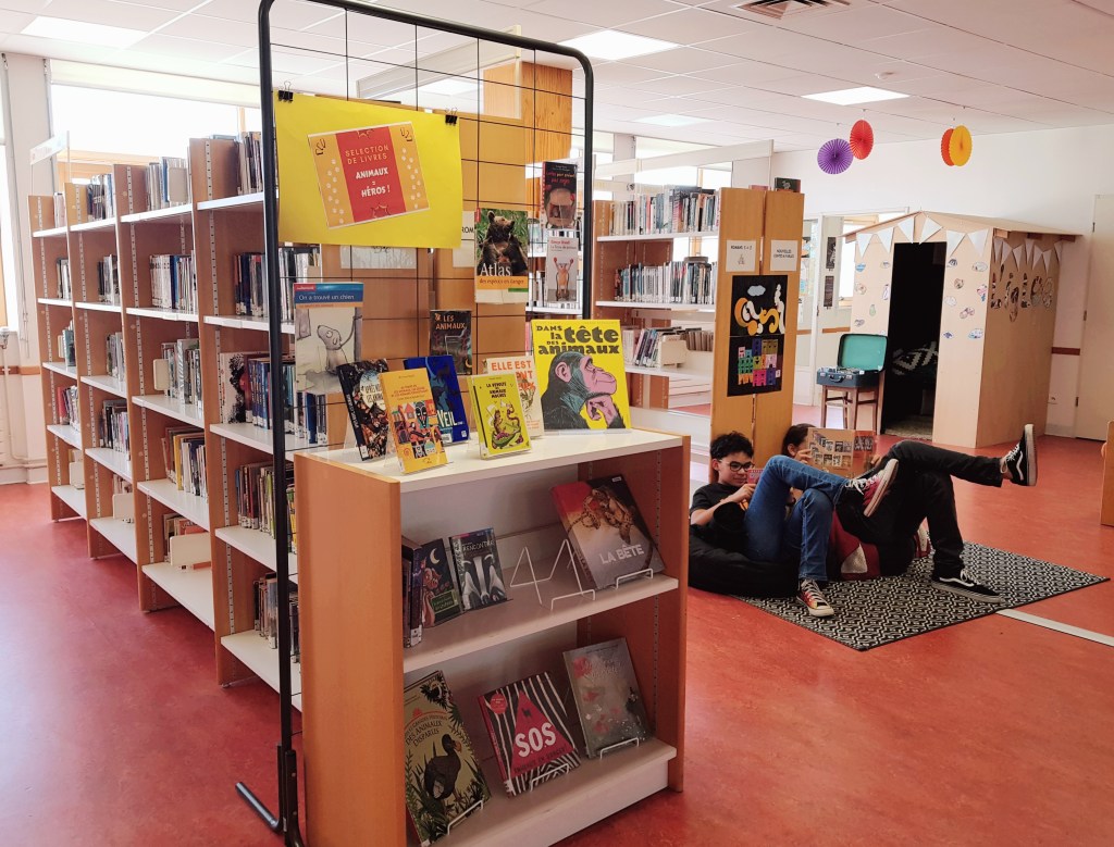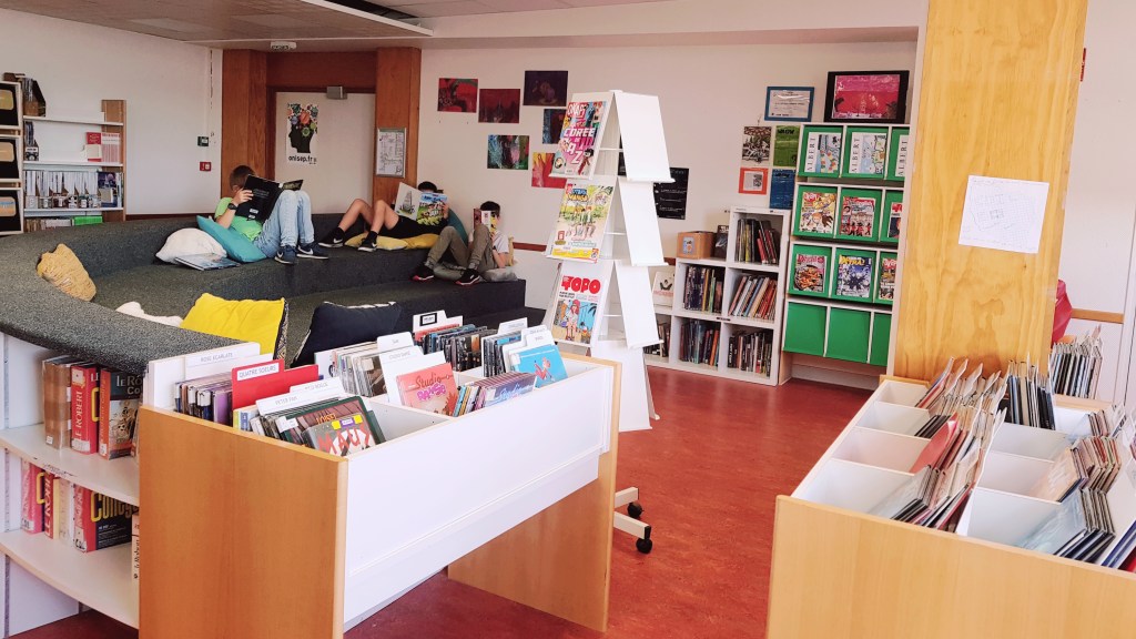 Lumineux et spacieux, il abrite des milliers de romans, albums, livres documentaires, BD et mangas. De quoi se documenter et se faire plaisir. Le fonds documentaire est complété par une dizaine de magazines et journaux, allant de Otaku manga à Topo, en passant par Sciences & vie junior et Okapi. L’ensemble des documents est empruntable.