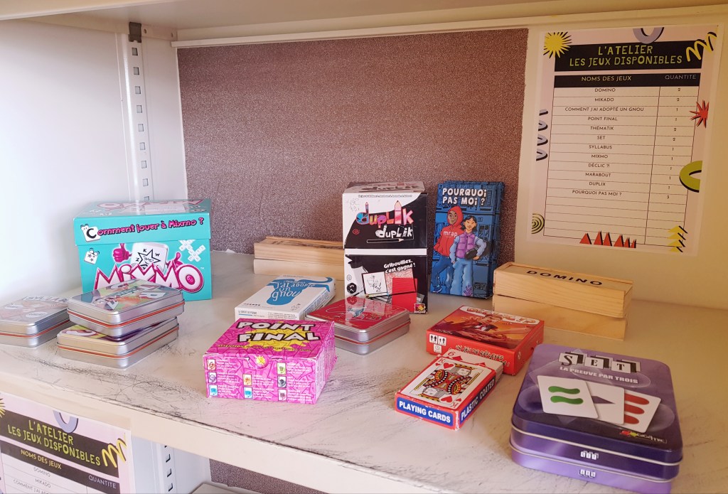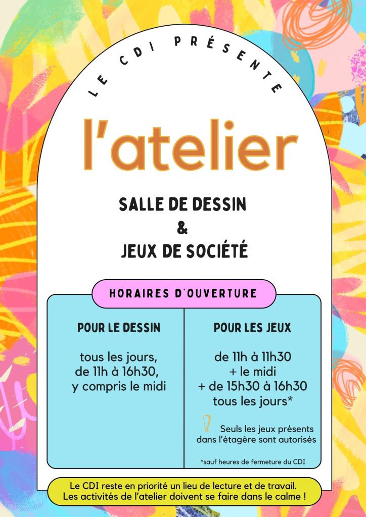 – jouer à des jeux de société minutieusement sélectionnés sur certains créneaux horaires (voir affiche au CDI).
