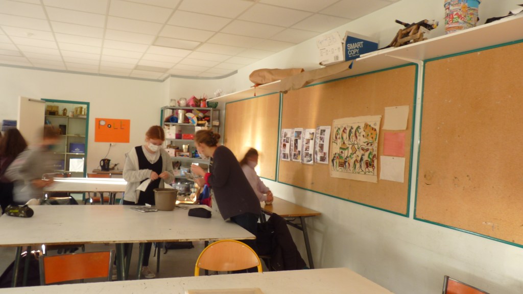 Les élèves de 5C du collège Bellevue de Redon ont accueilli l’artiste Pauline Lemée le jeudi 07 octobre pour un atelier de fabrication de papier, avec pour objectif final de réaliser un livre d’artiste.