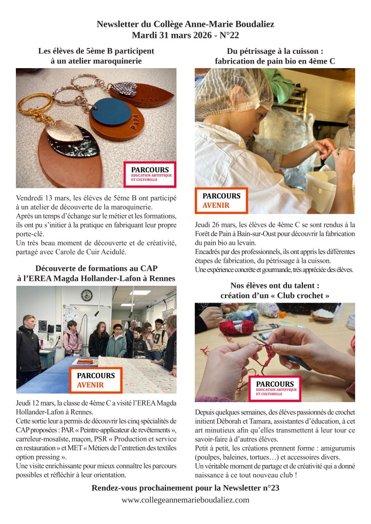 Actualités Newsletter n°22- Mardi 31 mars 2026 Publié par collegebellevue35 le 18 novembre 20219 avril 2026 J’aime chargement… Similaire