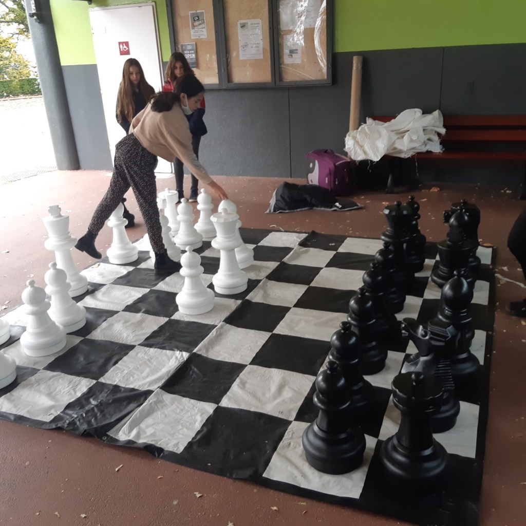 Les futurs Garry Kasparov du collège Bellevue ont pu mettre en œuvre leurs talents de joueurs d’échecs grâce à l’association « Les cavaliers de 3 pays » avec son jeu grandeur nature.