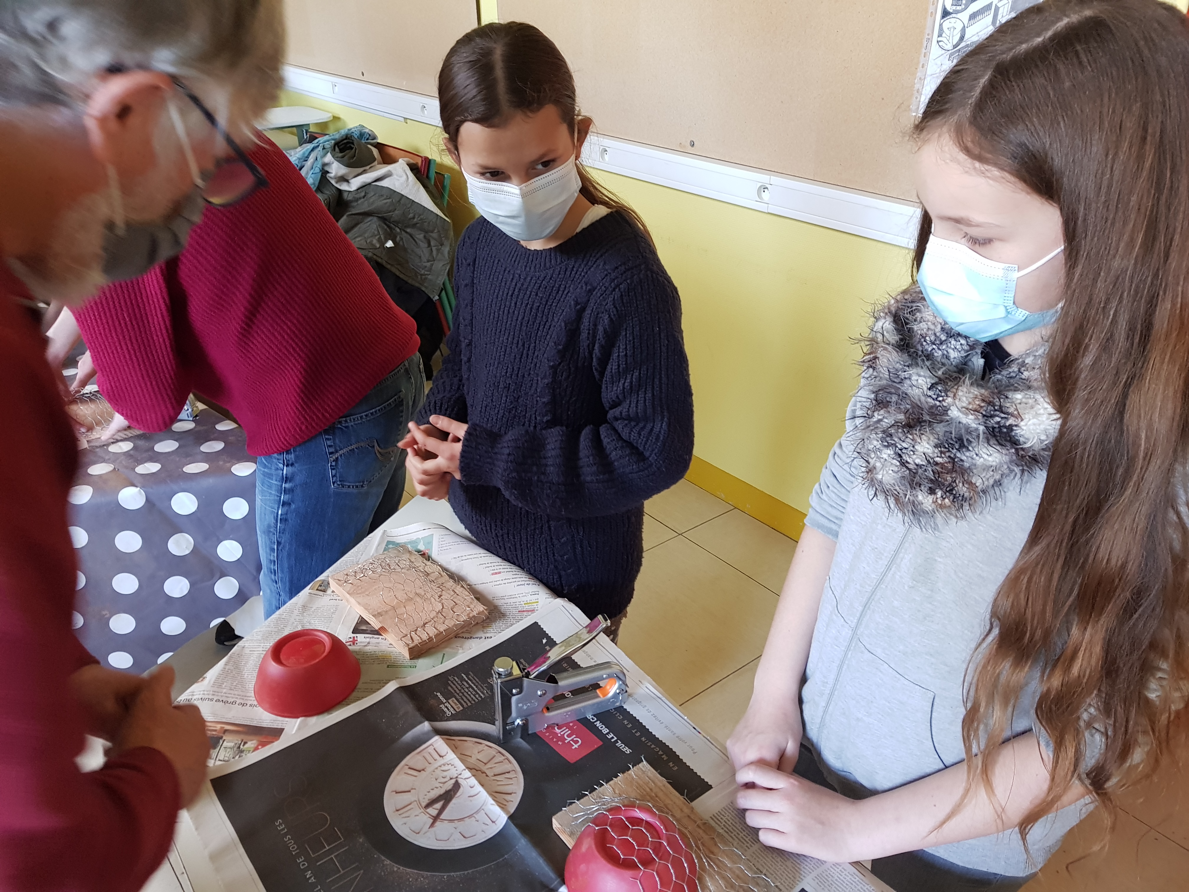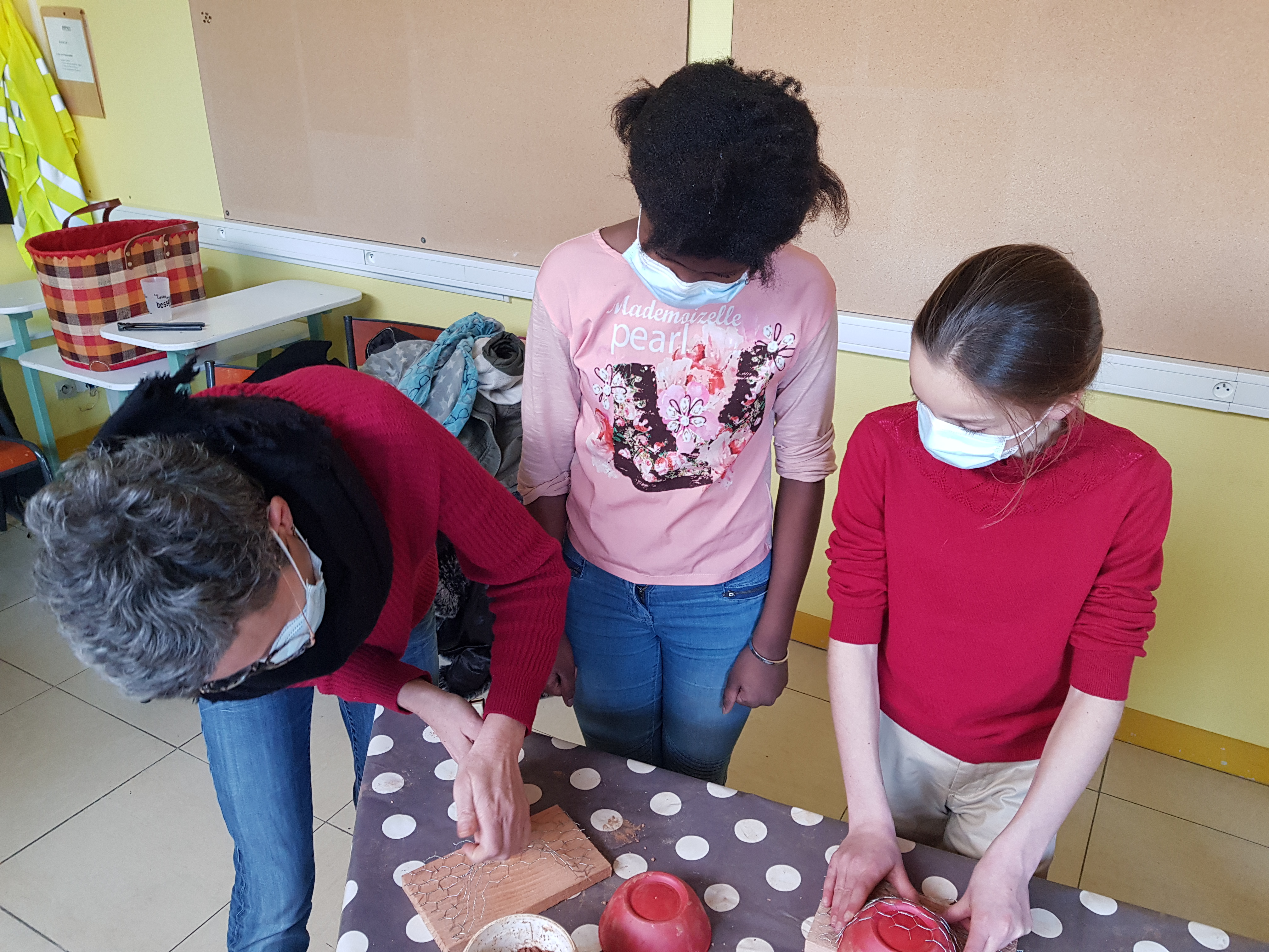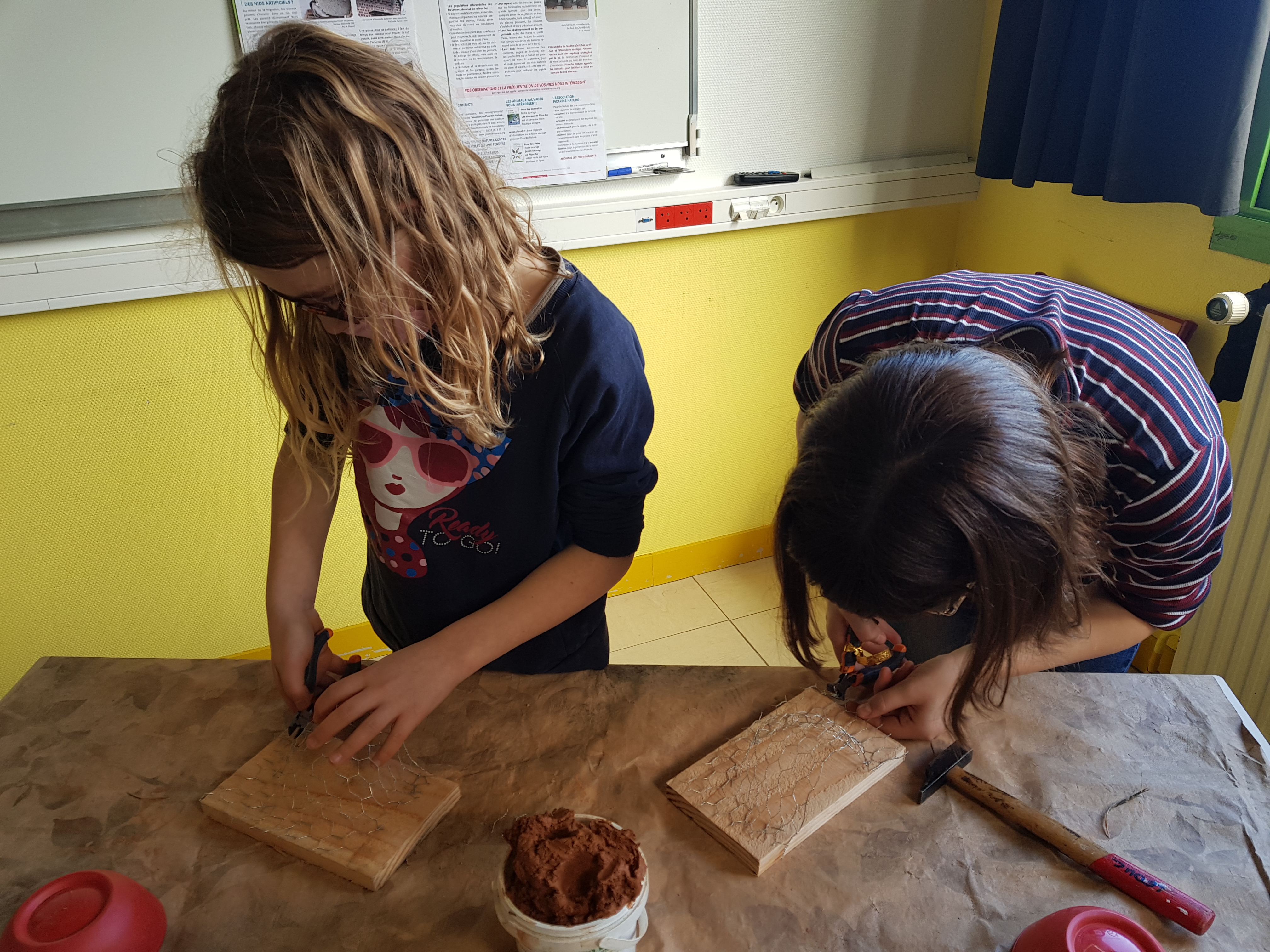 L’atelier manuel a alors débuté, permettant aux élèves de manipuler bois, grillage et argile. Les nids fabriqués seront installés dans l’enceinte du collège. En effet, l’an passé les élèves de l’IEM ont constaté que cet oiseau mythique était très présent au dessus des cours A et B !