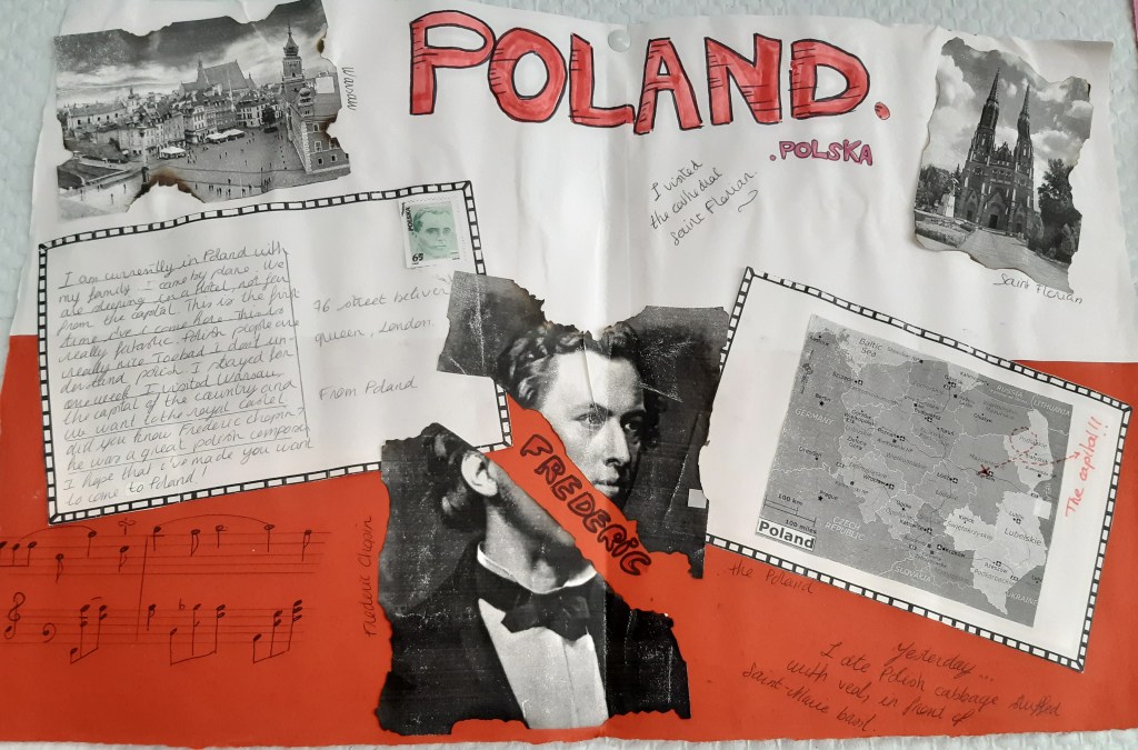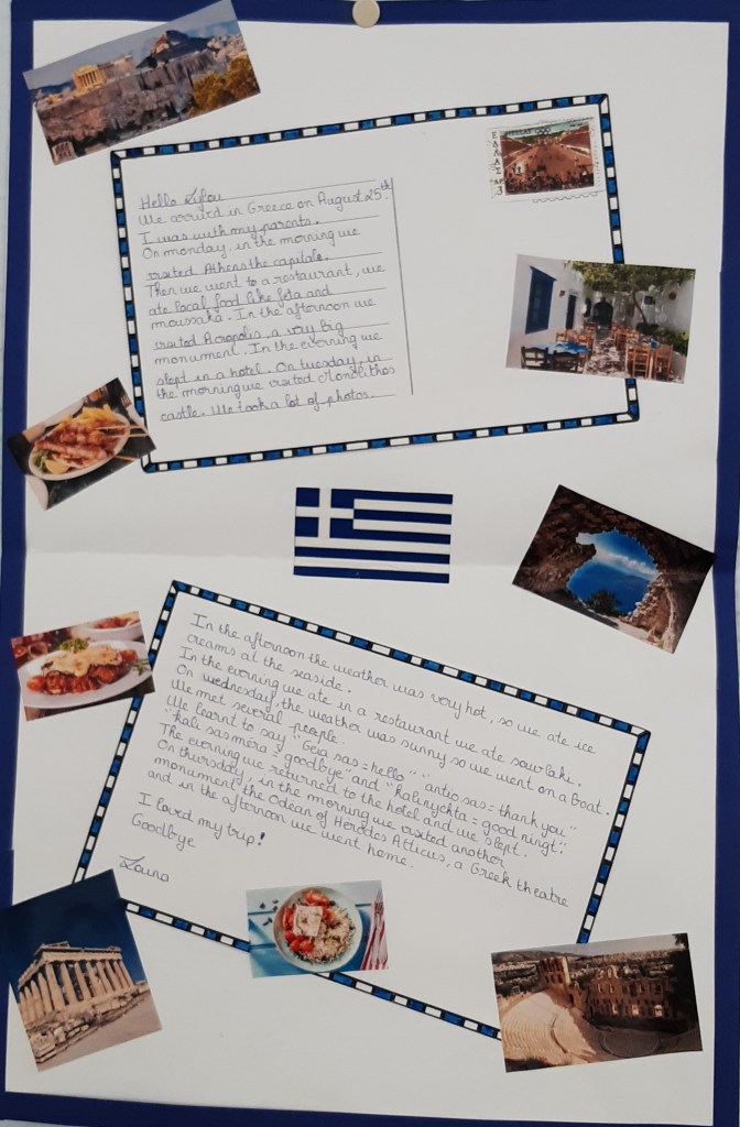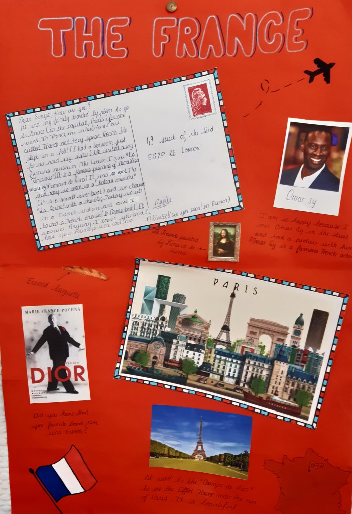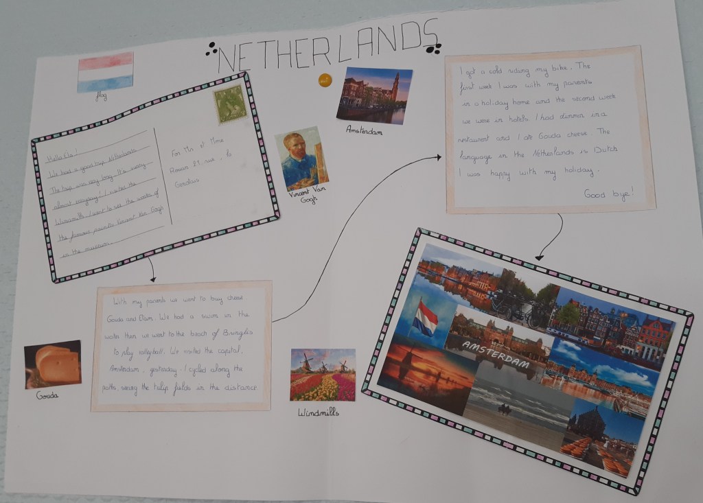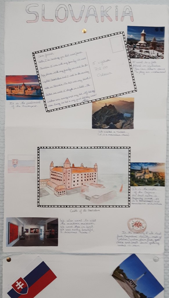 Les élèves de 3e C et E de Madame Roulleau ont travaillé sur le thème de l’Europe en anglais : ils ont réalisé une exposition visible en salle de réunion du collège « A postcard from Europe ». Le principe ? écrire une carte postale d’un pays d’Europe tiré au sort et réaliser une affiche. Un quiz était ensuite proposé en français et en anglais aux visiteurs.