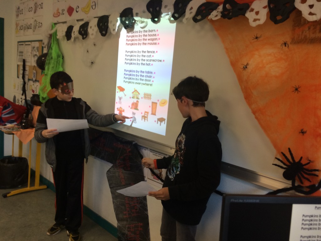 Pour célébrer Halloween cette année tous les élèves de 6ème ont été invités à venir écouter, raconter ou réciter des histoires en français (dans la salle de classe de Mme Lalouer) et des poèmes en anglais (dans celle de Mme Le Roux).