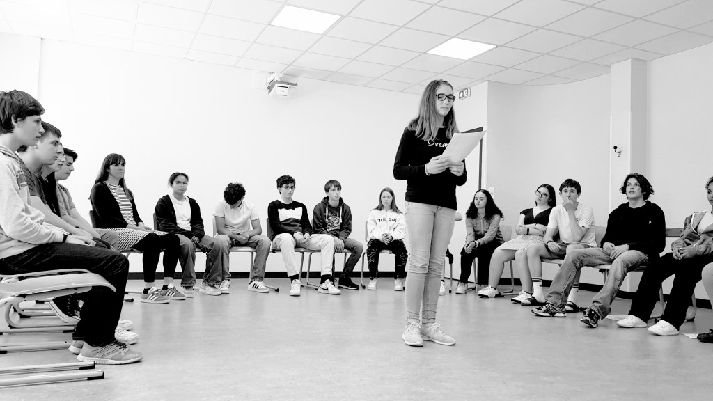 C’est la rencontre de deux artistes avec deux classes de troisième, une d’enseignement générale et