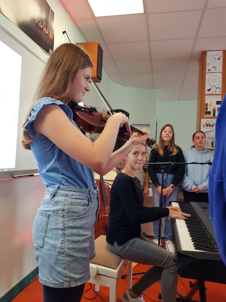 Cette année 2023-2024, les élèves participent au projet Future Folk Stories et ont la chance de travailler avec deux excellents musiciens : Robin Fincker, saxophoniste et clarinettiste, ainsi que Mathieu Werchowski, violoniste. Ils apprennent à faire de la prise de son, du collectage sonore et de la MAO (Musique Assistée par Ordinateur). Une restitution publique suivie d’un concert aura lieu le vendredi 12 avril au Carré 9 dans le cadre du festival « Bordures et Alentours ».
