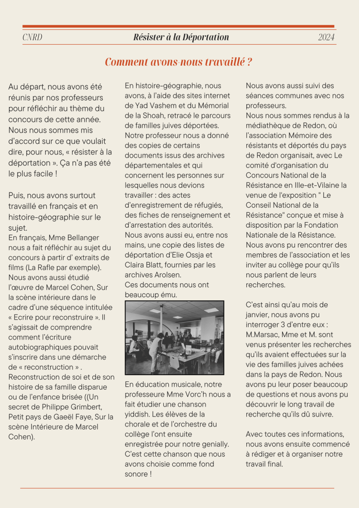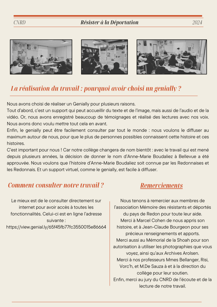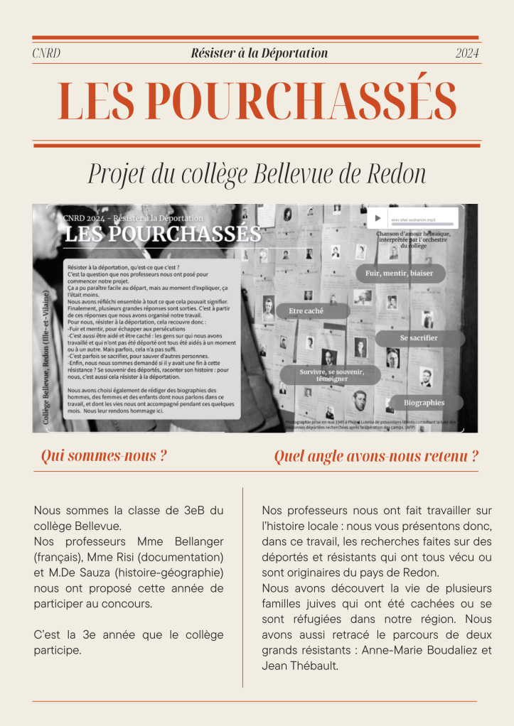 Ça bouge à Bellevue, Les projets Concours national de la Résistance et de la déportation Publié par collegebellevue35 le 11 avril 202411 avril 2024 Bonne visite ! J’aime chargement… Similaire
