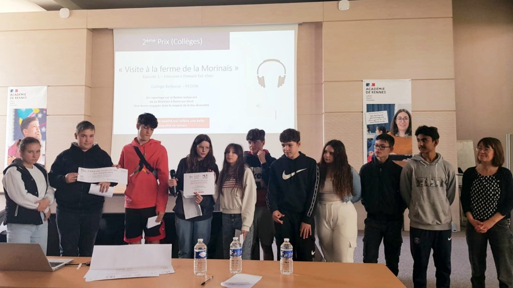 Le lundi 3 juin, 10 élèves de la classe de 4e SEGPA se sont rendus au rectorat de Rennes pour se voir remettre le 2ème prix académique au concours des médias scolaires Médiatiks (CLEMI), dans la catégorie radio/podcast.