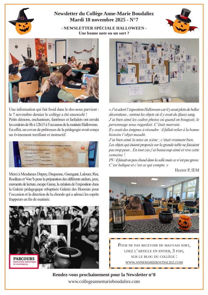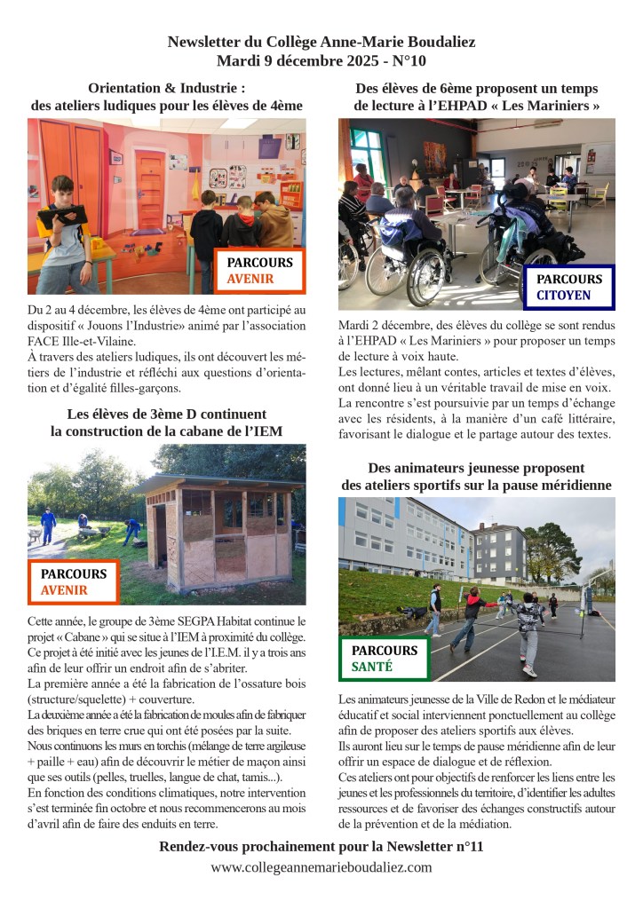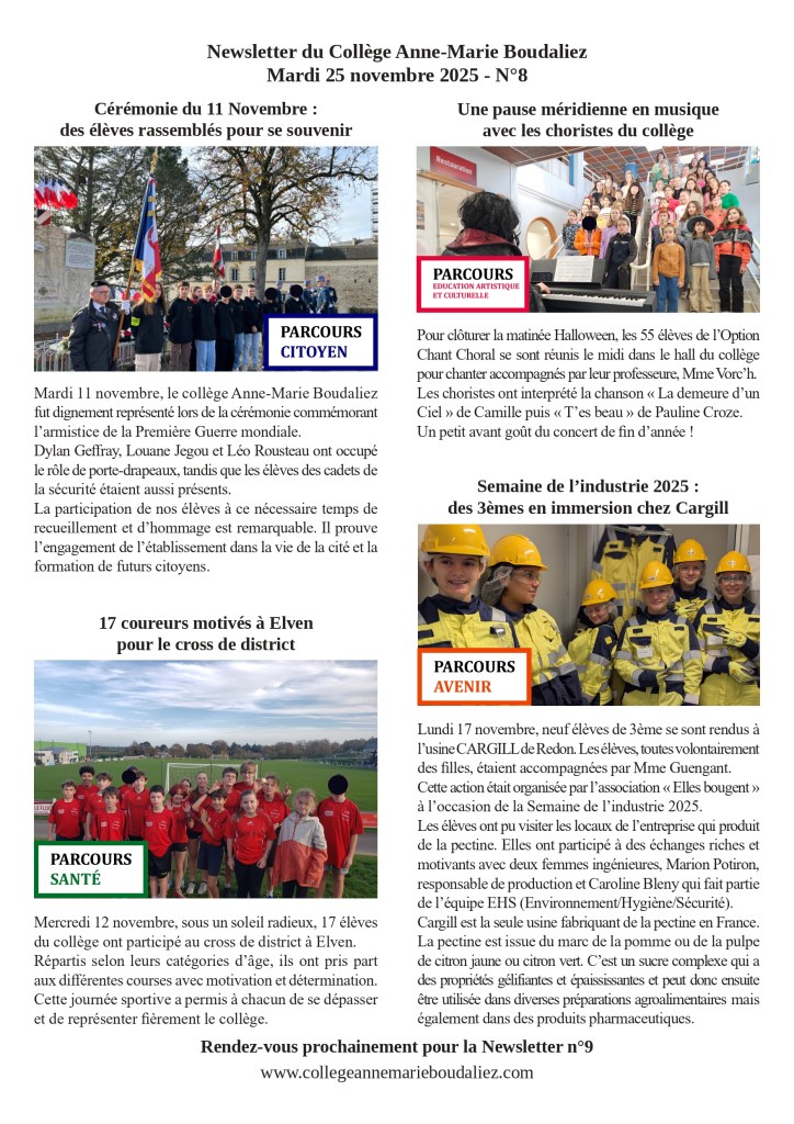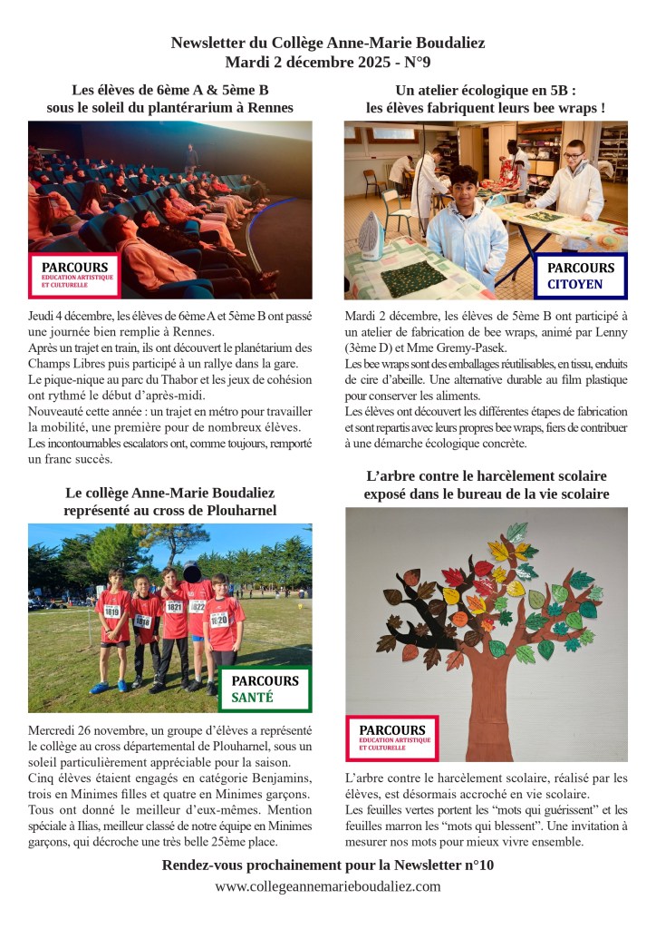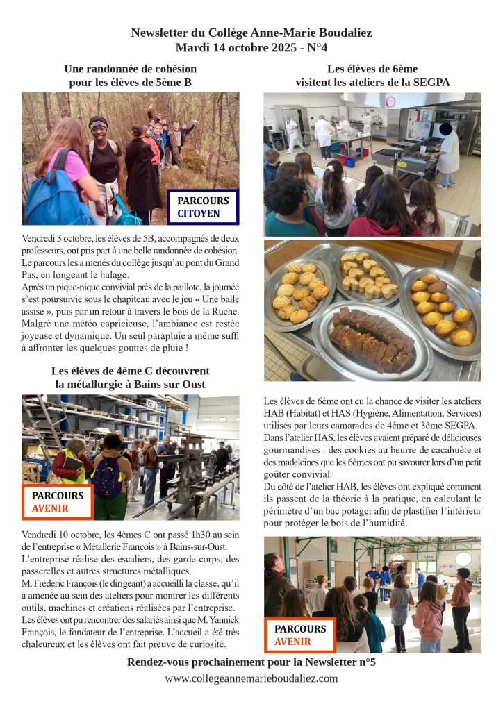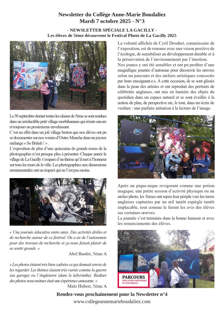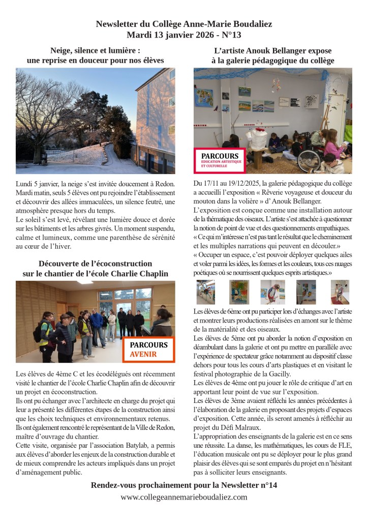 Parce qu’il ne se passe pas une semaine sans que les élèves du collège Anne-Marie Boudaliez n’explore de nouveaux horizons, Tamara Poignant va à la rencontre des équipes pour collecter les informations qu’elle nous fait partager dans la newsletter de l’établissement. Le meilleur moyen pour découvrir la richesse des parcours proposés et conserver une trace des évènements qui jalonnent une année scolaire.